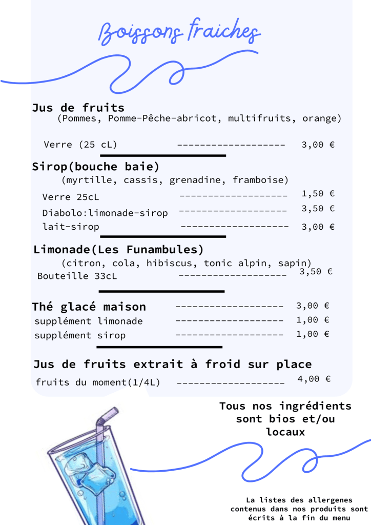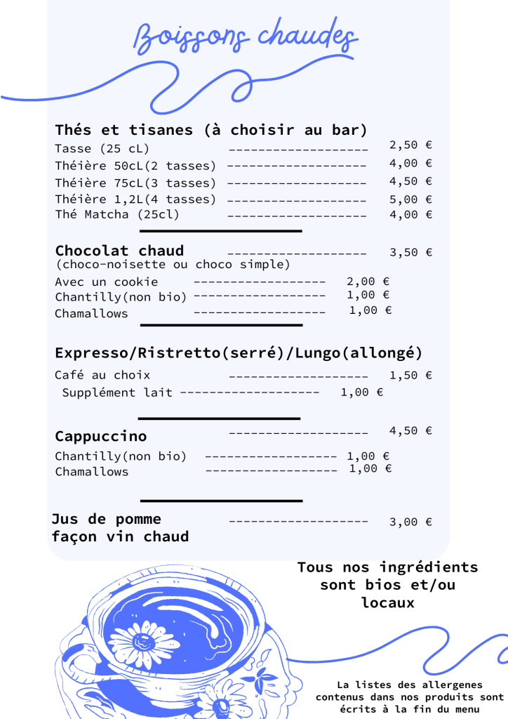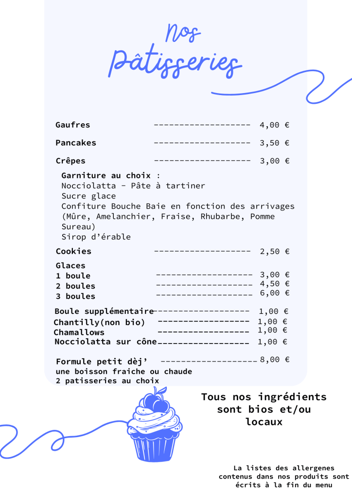Boissons sans alcool, gaufres, crêpes, cookies